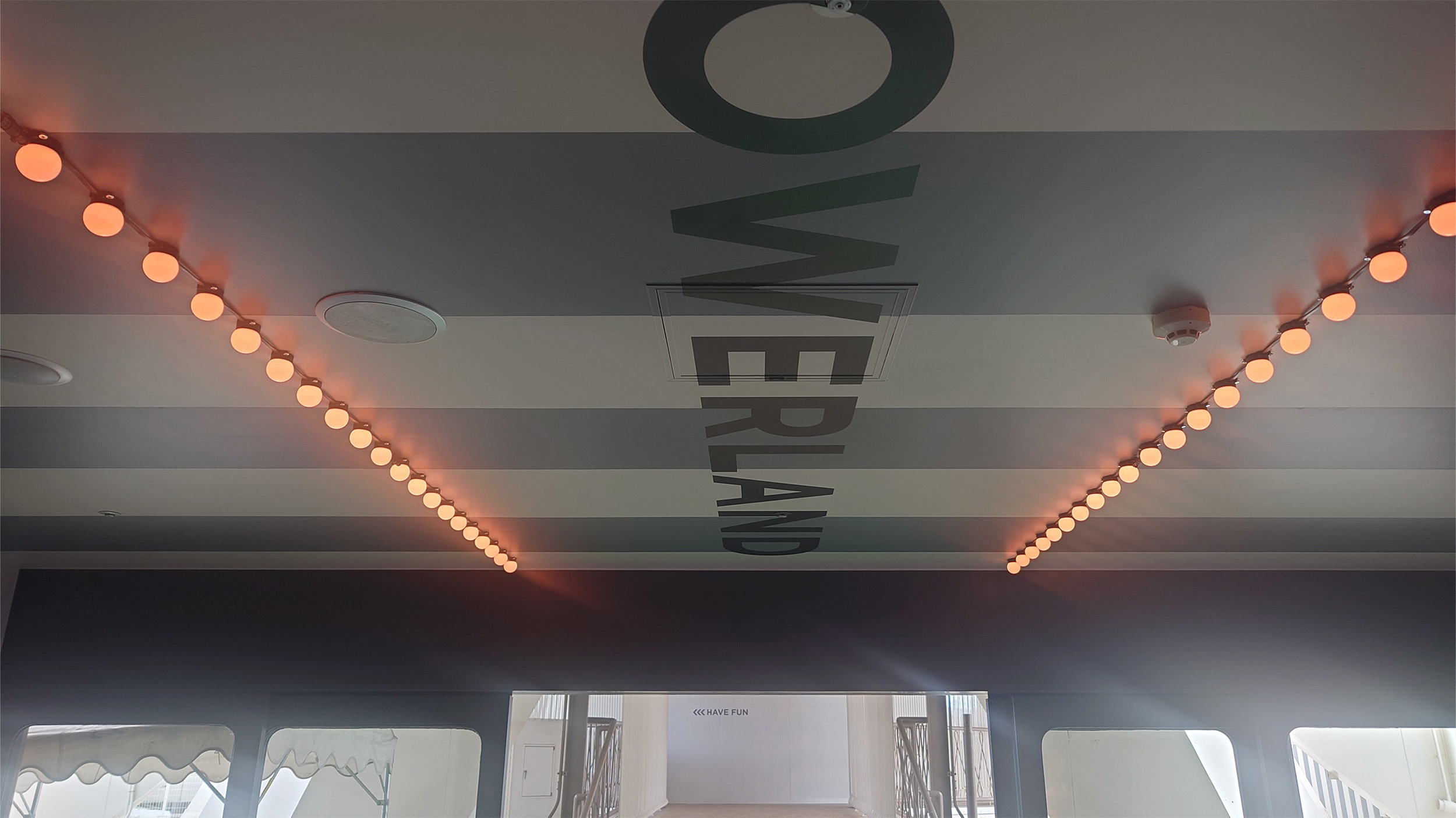 京都の街並みを一望できる開放的な空間に、アイコニックな「楽しさ」と「特別感」を加え、最新の照明制御システムを導入。単なる照明ではなく、光が美しく流れるようなプログラムを施すことで、生命感あふれる躍動感を演出しました。また時間帯やイベント、DJナイトの盛り上がりに合わせ、瞬時に空間の表情を変えられる柔軟な制御システムを構築しています。